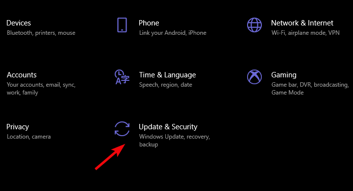 - Allez dans la section Mise à jour et sécurité.