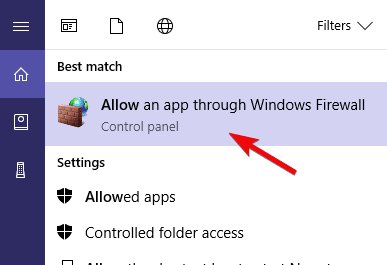 - Dans la barre de recherche, tapez Autoriser et ouvrez Autoriser une application via le pare-feu Windows.