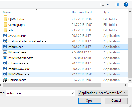 - Parcourez le dossier d’installation de Malwarebytes et ajoutez le fichier exécutable.