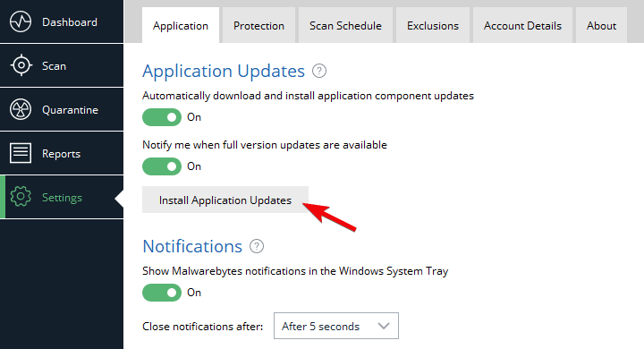 - Essayez à nouveau de mettre à jour Malwarebytes.