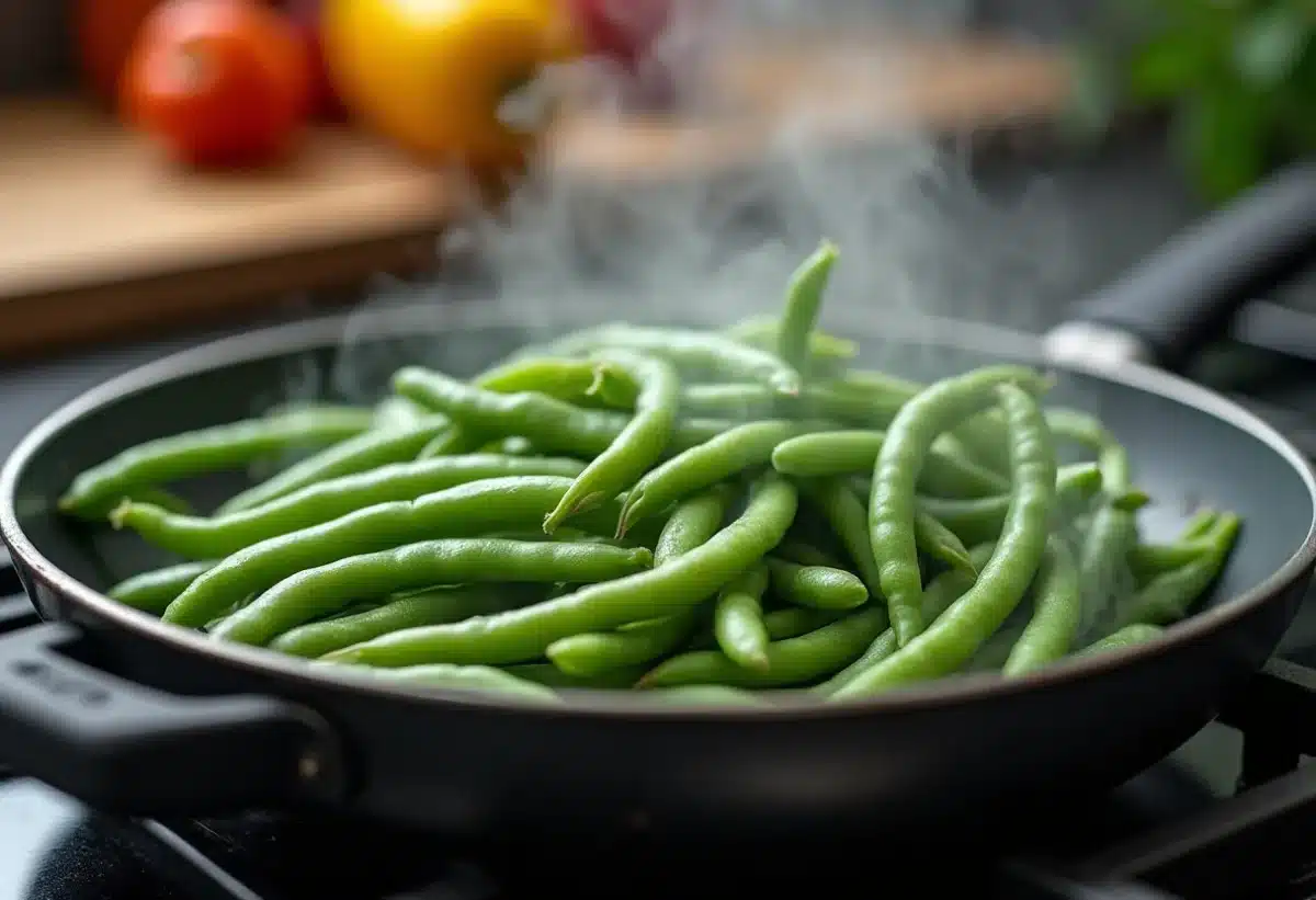 - La poêle : 3 à 4 minutes pour des haricots verts croustillants.