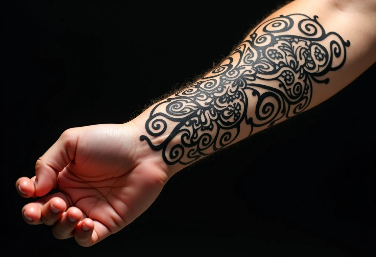 Le tatouage arabesque transcende l’esthétique pour devenir un véritable langage symbolique. Les volutes, ces lignes sinueuses et entrelacées, ne sont pas seulement des ornements. Elles sont porteuses de messages profonds, souvent liés à des concepts universels tels que la grâce et la féminité.